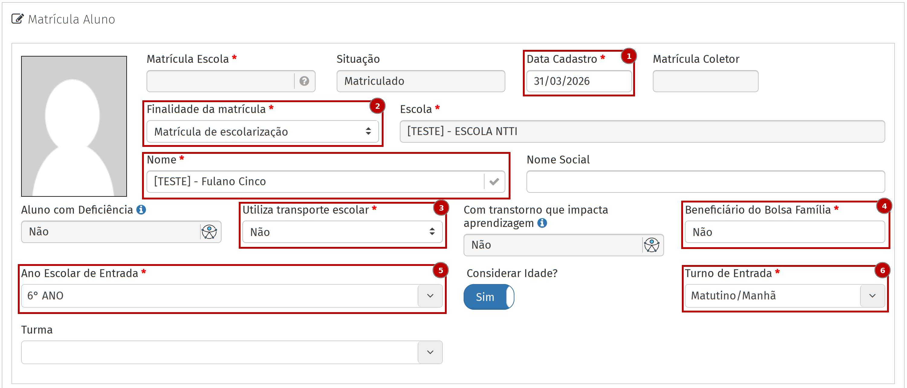 2. Preencha os campos com os dados básicos do estudante.