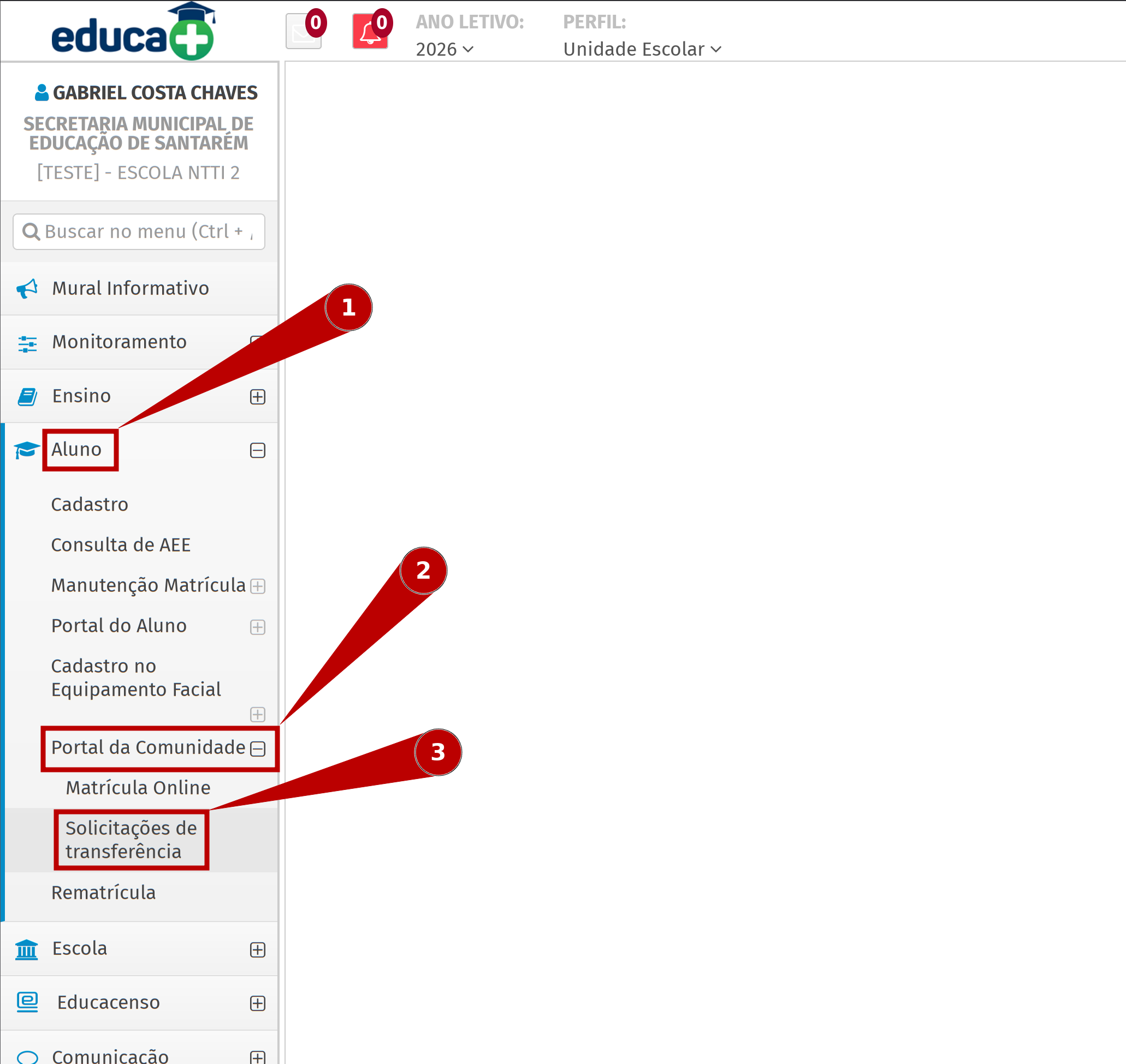 Aluno > Portal da Comunidade > Solicitações de transferência